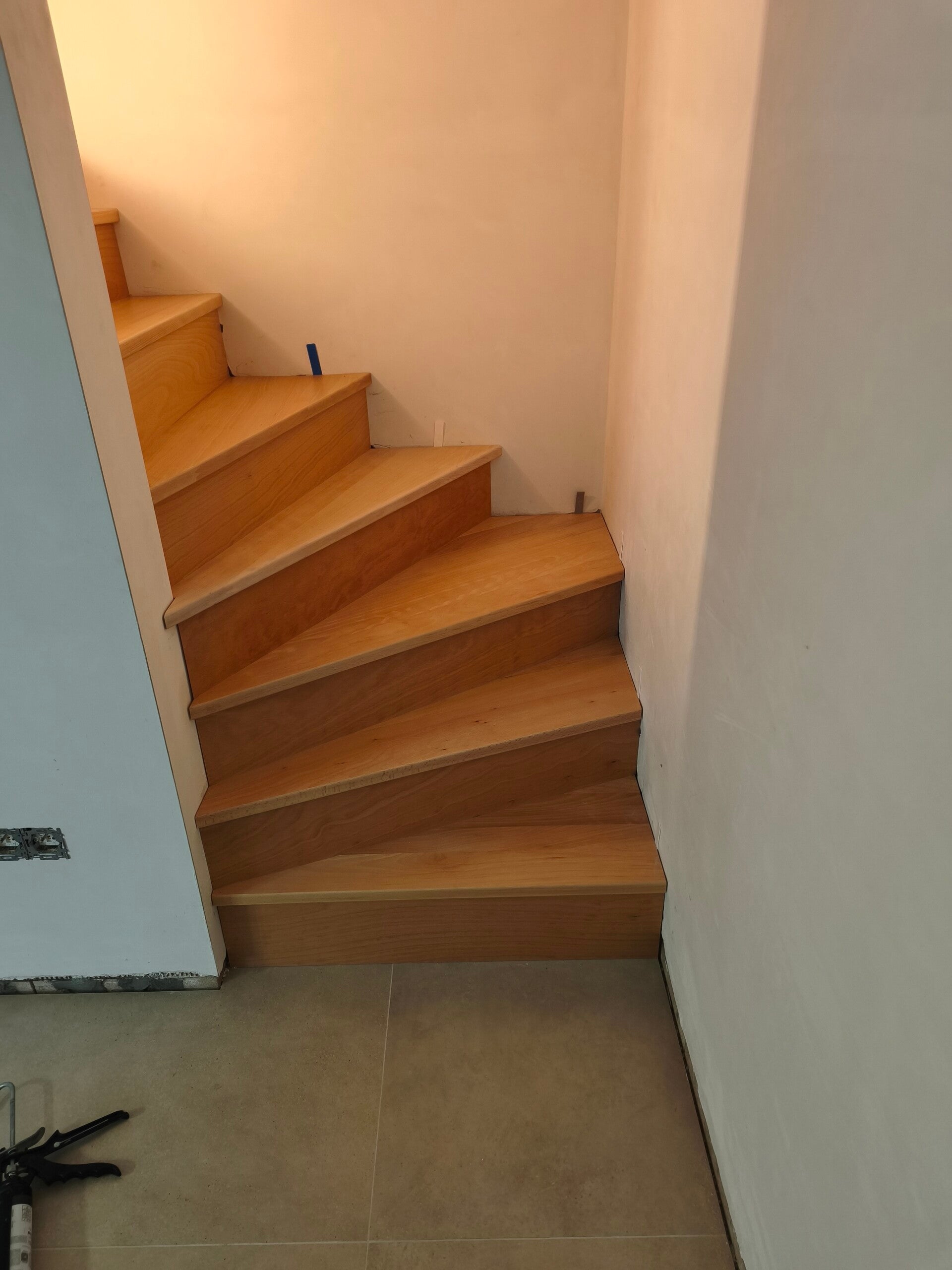 Het uitbekleden van een ruwe betonnen trap met massieve beuken traptreden
